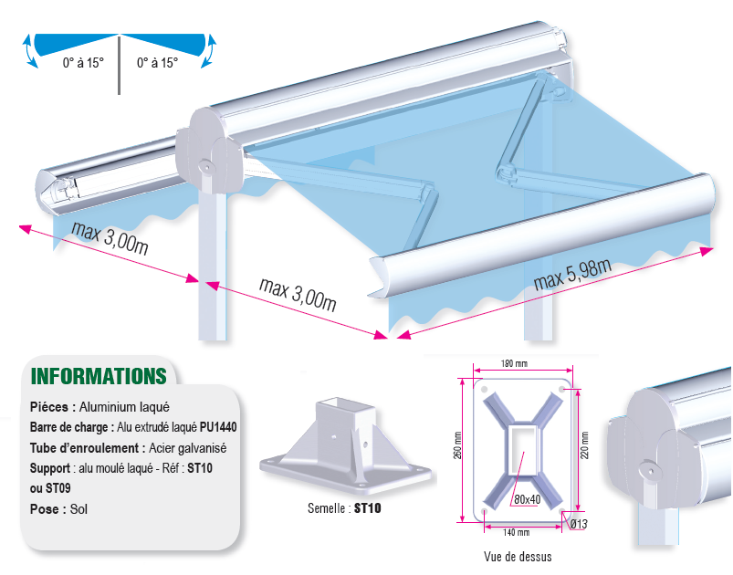 Store double pente coffre sur mesure, 600cm d'envergure (2 X 300cm)*