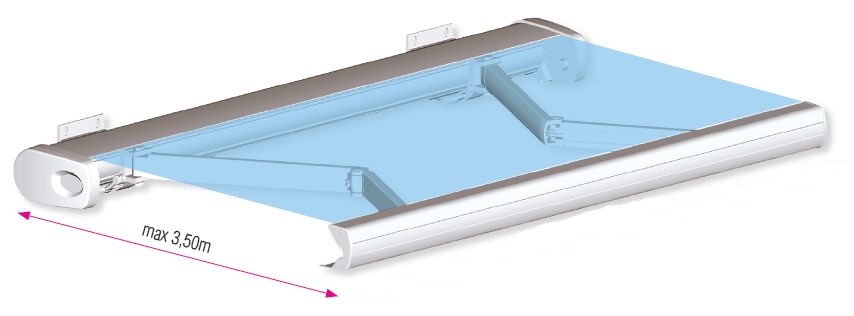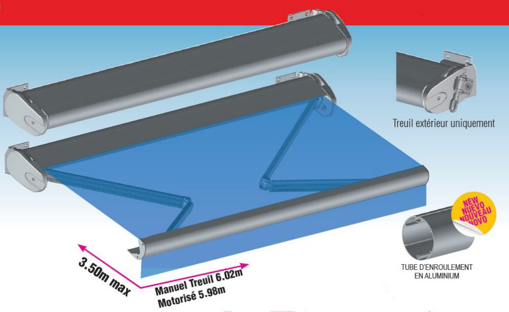 - lambrequin enroulable en option, à treuil manuel, hauteur toile 120cm