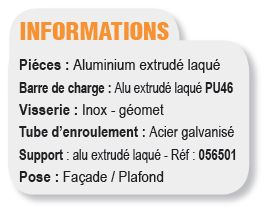 • manoeuvre par treuil manuel et manivelle ou en options motorisation filaire de marque française Telco avec ou sans commande de secours